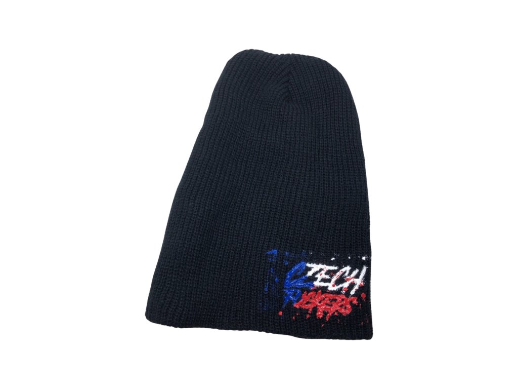 Pletený zimní kulich s logem Czech Fuckers v ručně malovaných barvách.