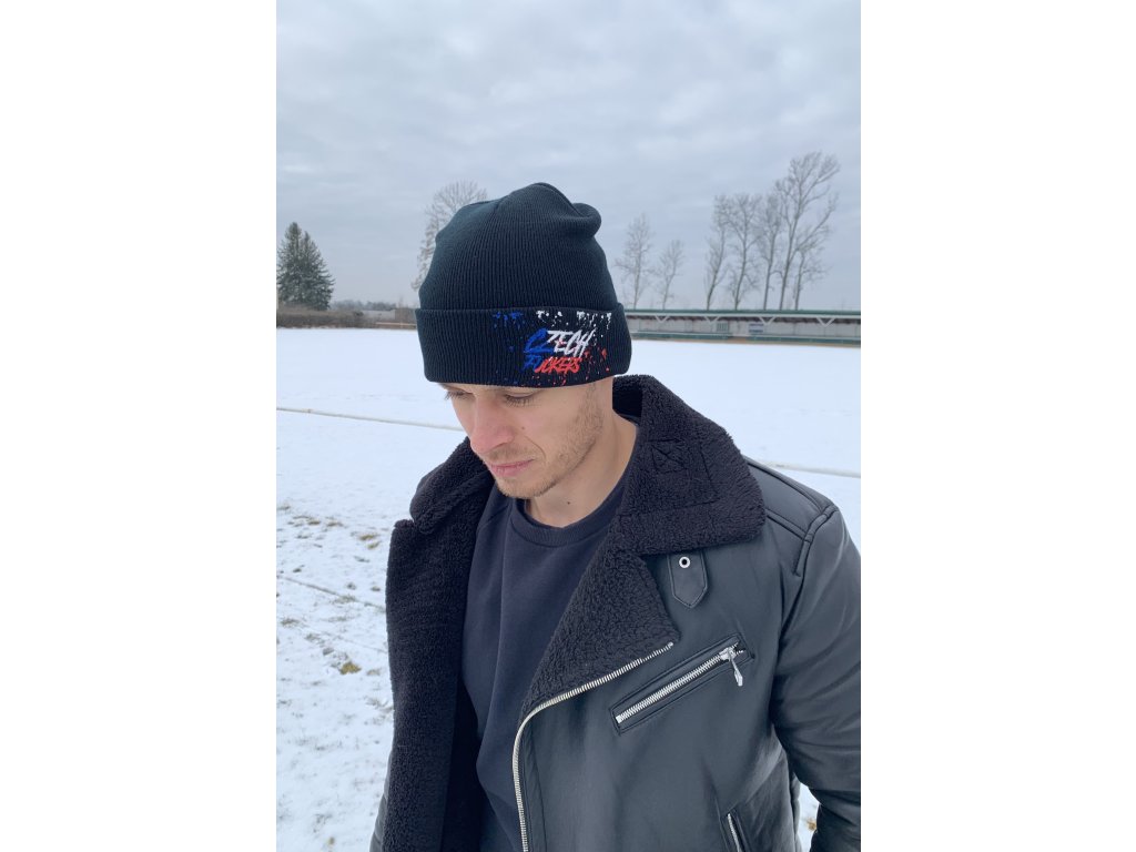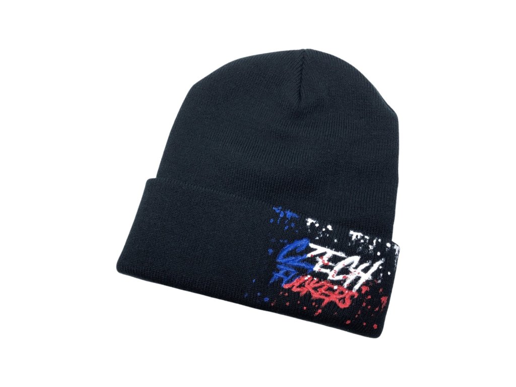 Pletený Beanie zimní kulich s ohrnutým lemem a barveným Czech Fuckers logem.