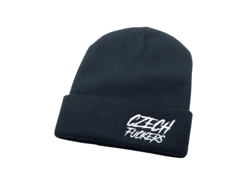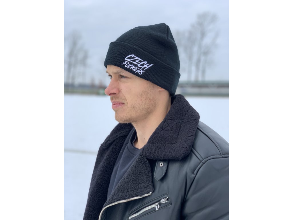 Pletený Beanie zimní kulich s ohrnutým lemem a vyšitým logem Czech Fuckers.