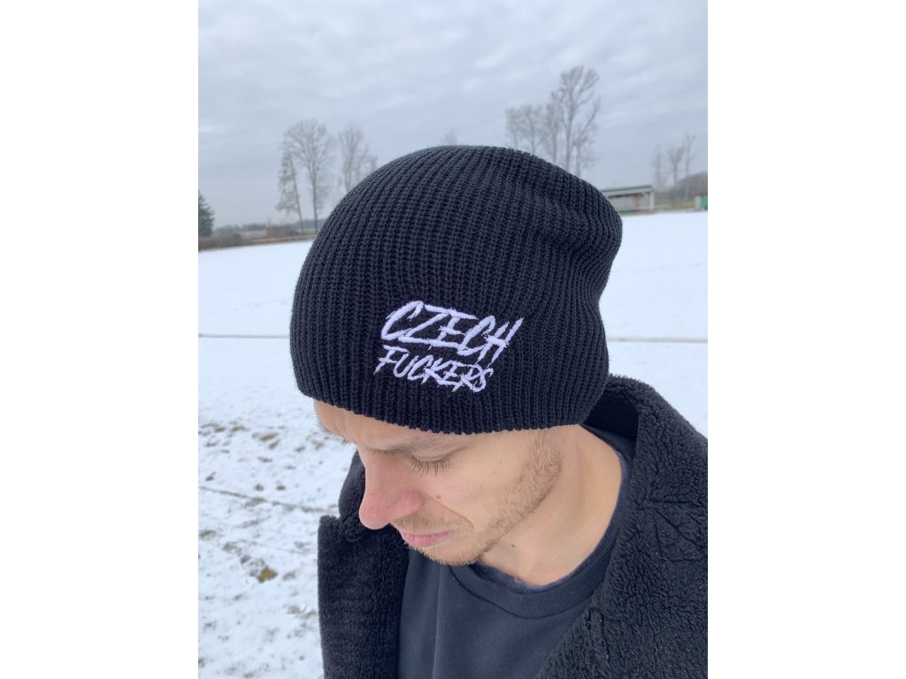 Pletený zimní kulich s vyšitým logem Czech Fuckers.